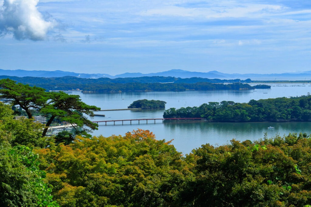 西行法師が諸国行脚の折り、松の大木の下で出会った童子と禅問答をして敗れ、松島行きを諦めたという由来の地。松島海岸の後背地にある西行戻しの松公園展望台から、桜と松島湾の景色が一体となった花見ができます。